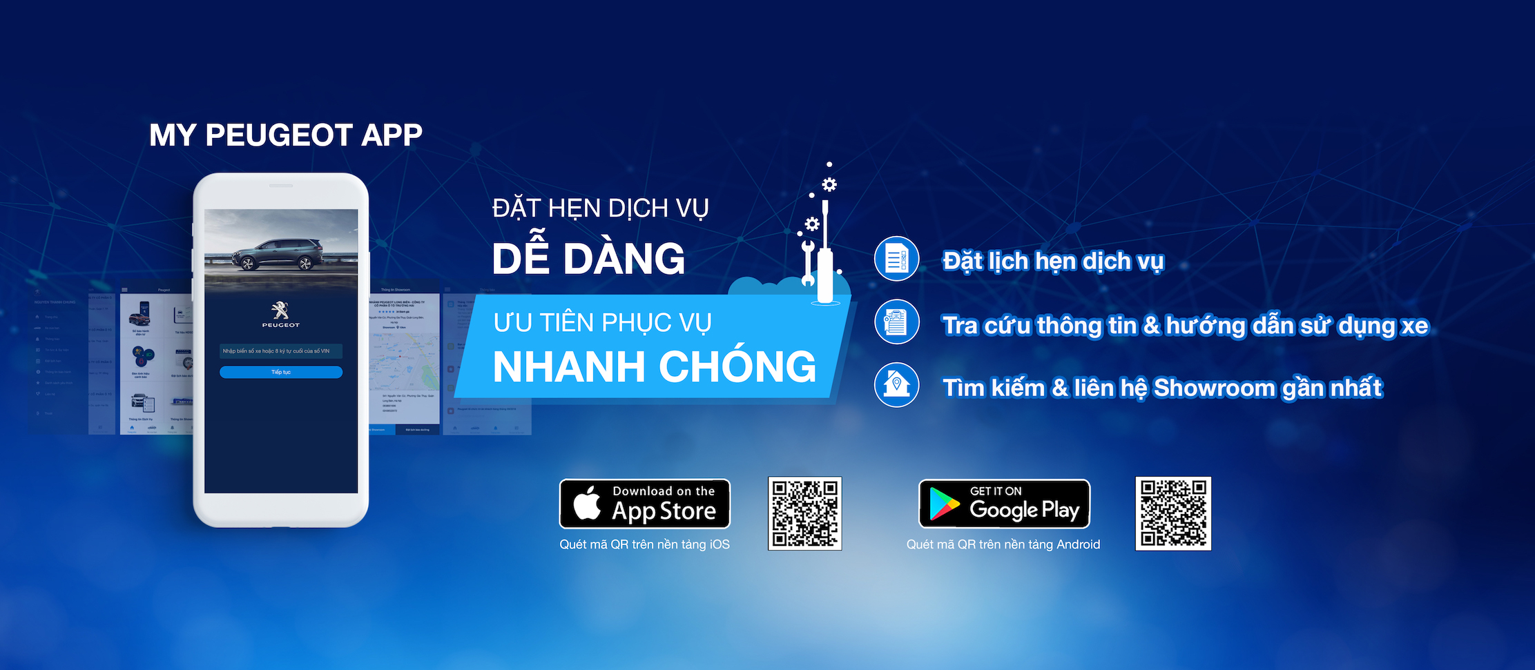 Nằm trong chiến lược định vị thương hiệu lên một tầm cao mới của Peugeot toàn cầu, cùng với việc Peugeot Việt Nam đang đạt được tốc độ tăng trưởng ấn tượng. Trong năm 2018 này, Peugeot Việt Nam không chỉ đưa về những sản phẩm với chất lượng, thiết kế sắc sảo và cảm giác lái khác biệt, mà còn tiếp tục nâng cấp showroom, mở rộng thêm hệ thống phân phối tại các vị trí thuận lợi ở các thành phố lớn như Hà Nội, Tp.HCM, Cần Thơ, Vinh, Đồng Nai, Bình Dương, các showroom này được xây dựng sang trọng, đẳng cấp ứng dụng các công nghệ hiện đại trong các hoạt động dịch vụ sửa chữa bảo hành, nhằm mang đến sự thuận tiện, cũng như sự đa dạng và đầy đủ hơn các sản phẩm đến tận tay người tiêu dùng Việt Nam với chất lượng toàn cầu không chỉ ở sản phẩm mà còn ở công tác bán hàng và dịch vụ hậu mãi.