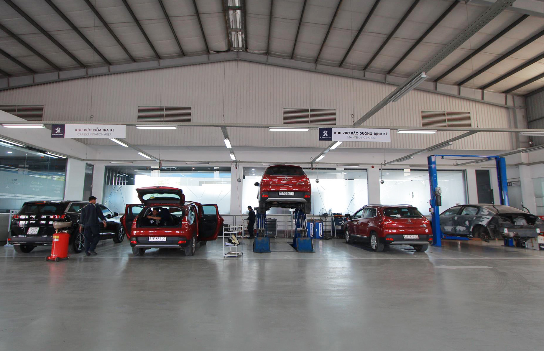 Trong đó, Showroom Peugeot Long Biên được xây dựng trên 5 tầng lầu trang bị khu vục bảo dưỡng nhanh gồm 13 khoang sửa chữa, 4 cầu nâng, 1 khoang rửa xe với diện tích lớn, khu sửa máy gầm điện với 15 khoang rộng rãi. Bên cạnh đó, với tổng diện tích 2700 m2 (Showroom Long Biên), 4.500m2 (SR Bình Tân) và 3.216m2 (SR Biên Hòa), cả 3 showroom đều sở hữu một khu vực chờ rộng rãi phục vụ khách tới tham quan, khu trải nghiệm thực tế ảo Amplified Experience cũng như sửa chữa xe với ghế ngồi thoải mái, quầy bar.